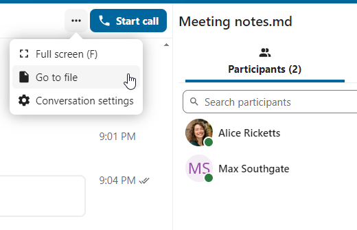 In Talk, a conversation will be created for the file. You can chat from there, or go back to the file using the ... menu in the top-right.