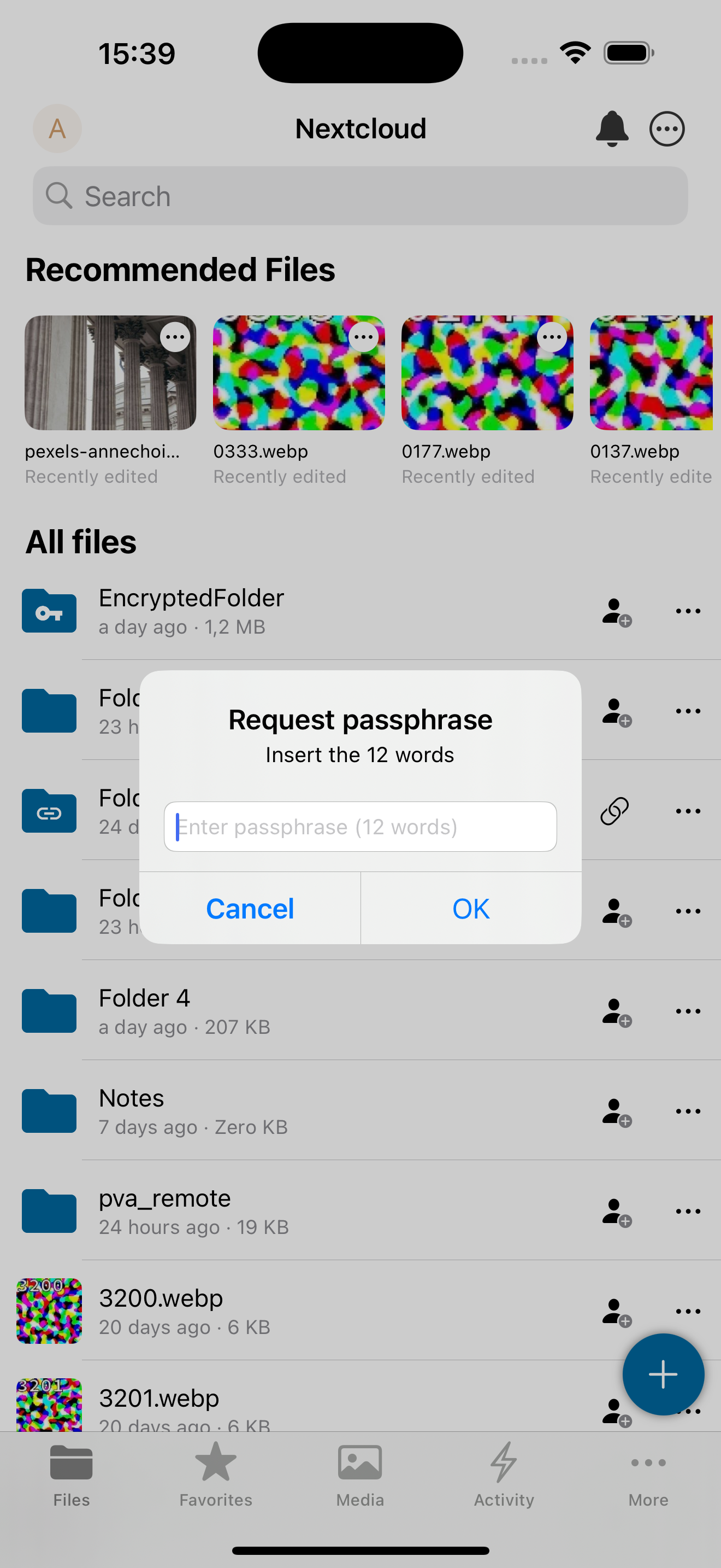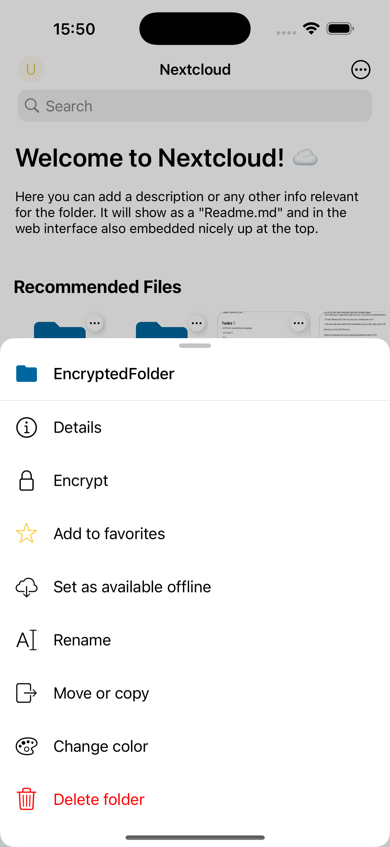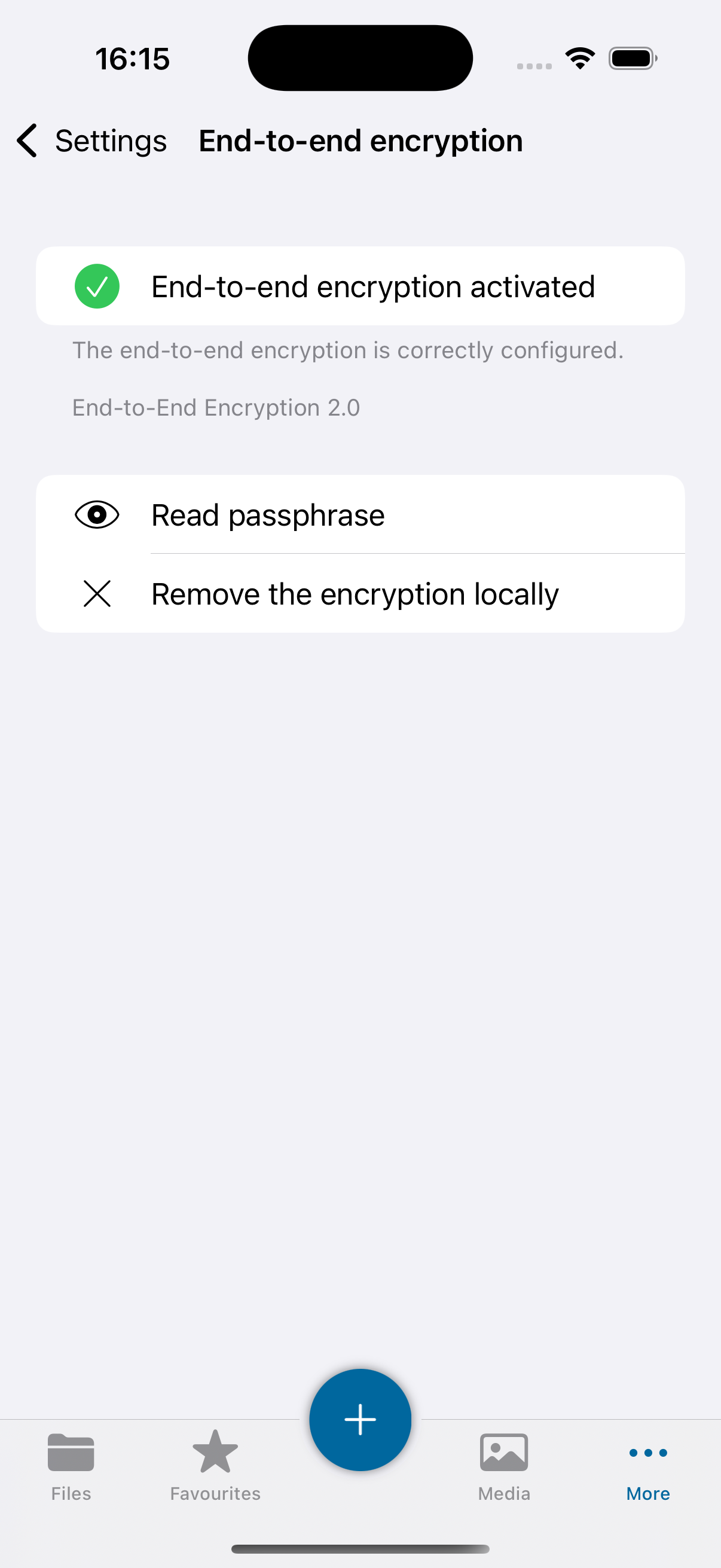 If enabled server side, Nextcloud provides the possibility to encrypt your files on your devices. This is called end-to-end encryption, or E2EE, because the files are encrypted on your device and only decrypted on your device. The server never sees the unencrypted files, further protecting user privacy and data security.