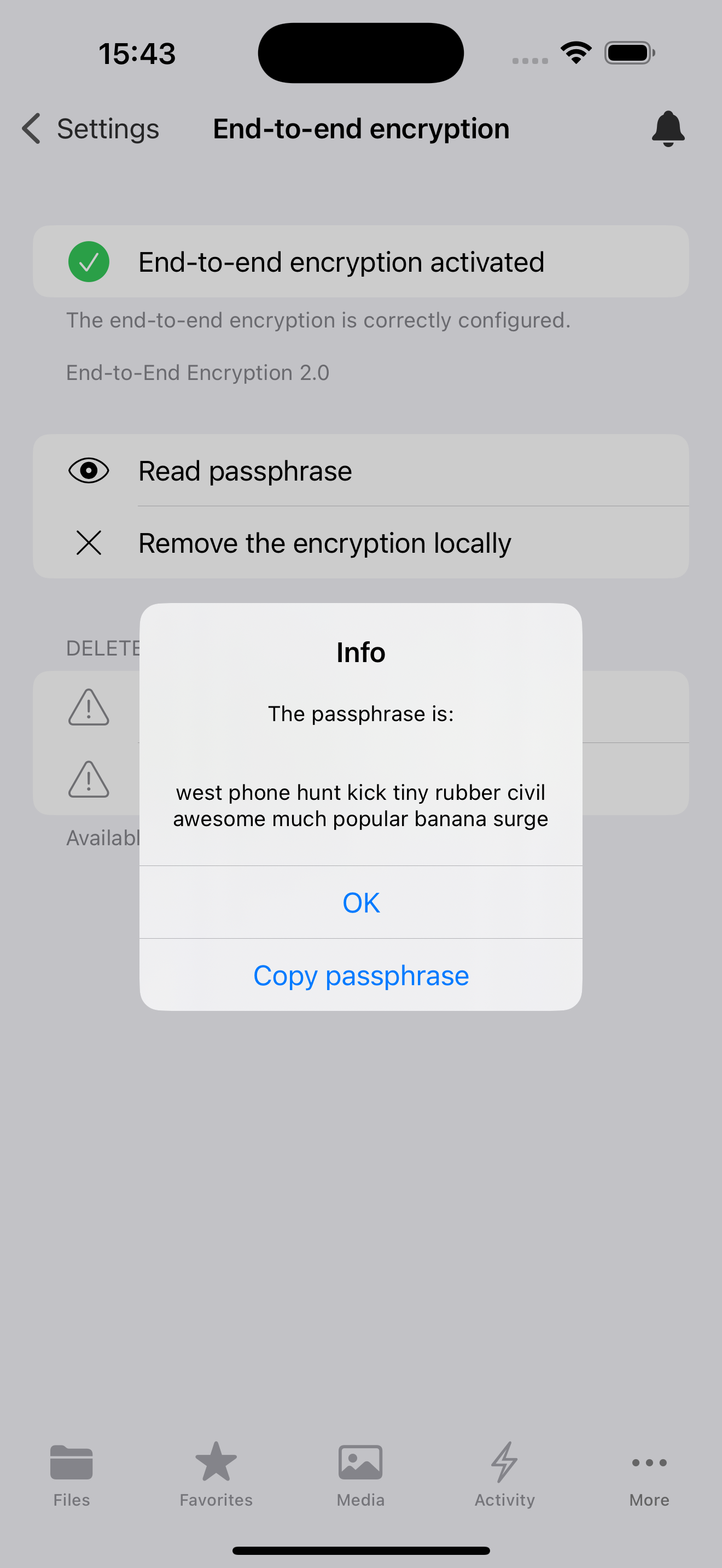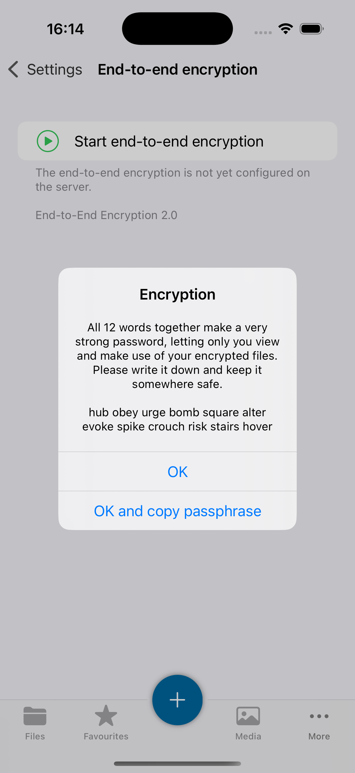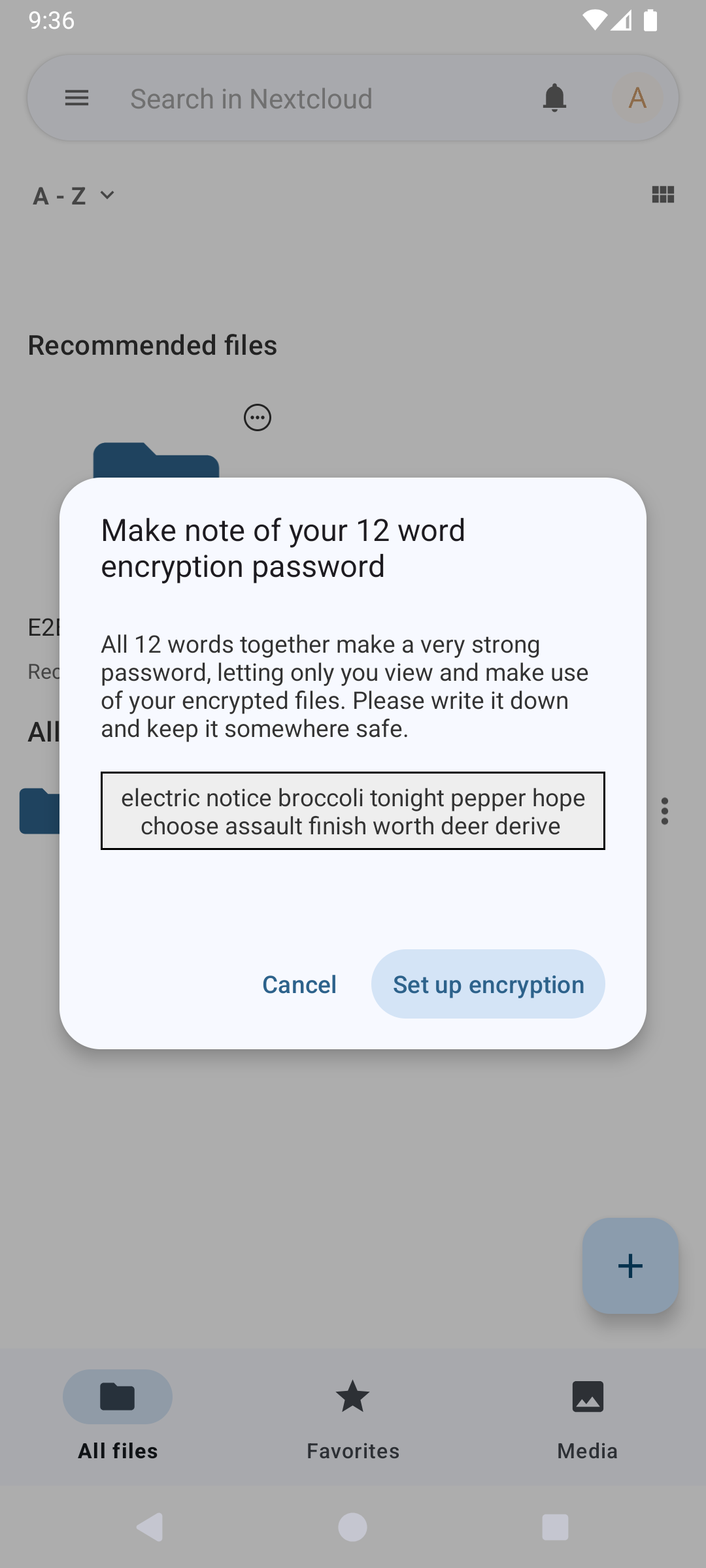 The mnemonic is a list of words that is used to encrypt and decrypt your files. It is important to keep this mnemonic safe, as it is the only way to access your files if you lose access to your device. If you lose access to your mnemonic, you will lose access to your files.