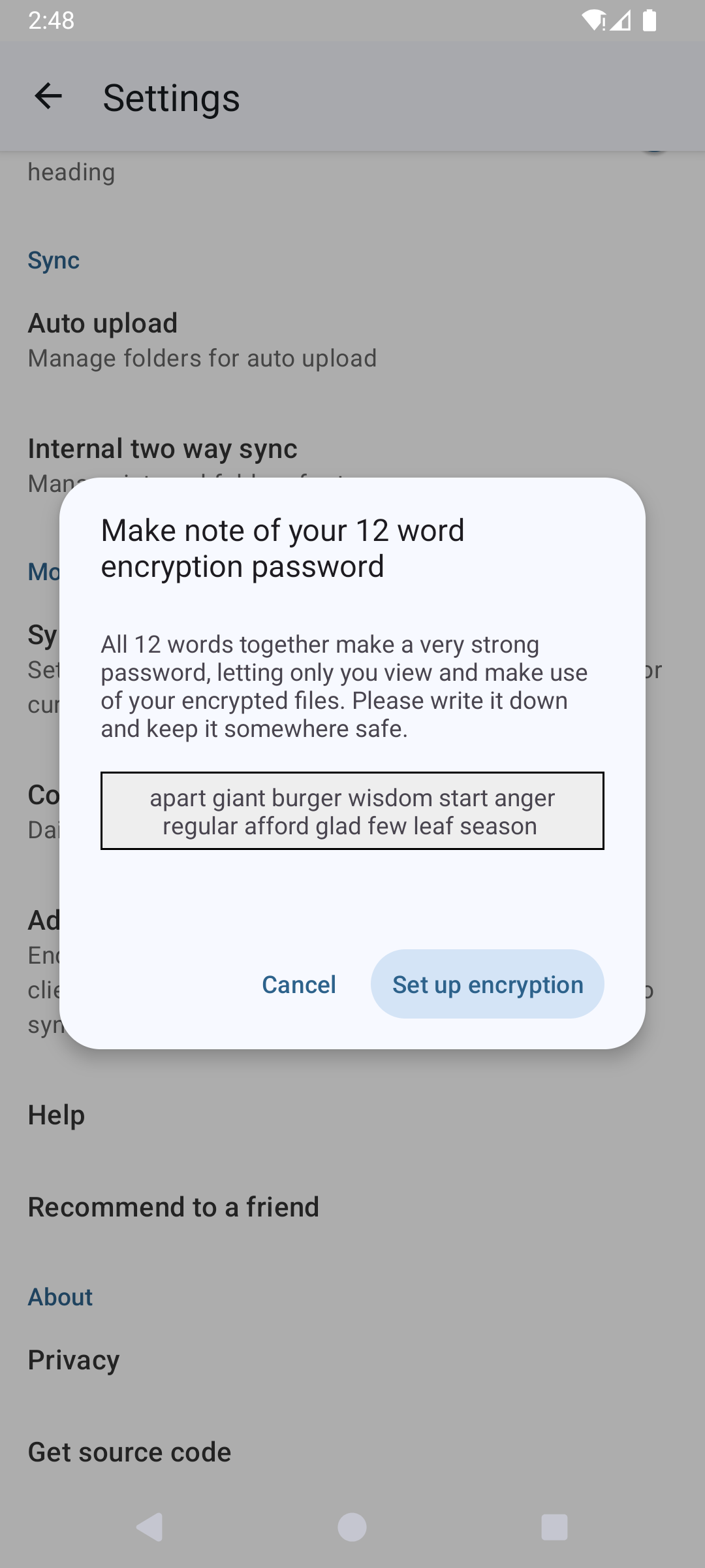AndroidDisplaying the mnemonic on an Android device