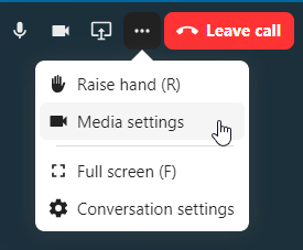 During a call, you can find the Camera and Microphone settings in the ... menu in the top bar.