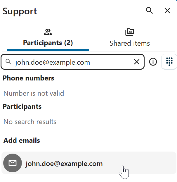 A guest can be invited to a conversation via email. The email contains a link to join the conversation. If the guest clicks the link, they will be redirected to the conversation with an individual access token.