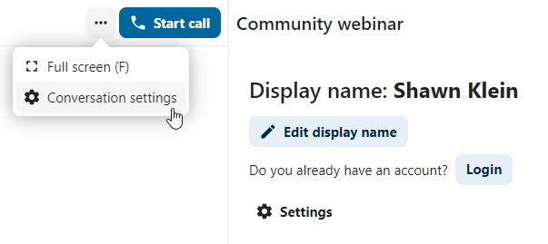 In the conversation menu you can choose to go full-screen. You can also do this by using the F key on your keyboard. In the conversation settings, you can find notification options and the full conversation description.