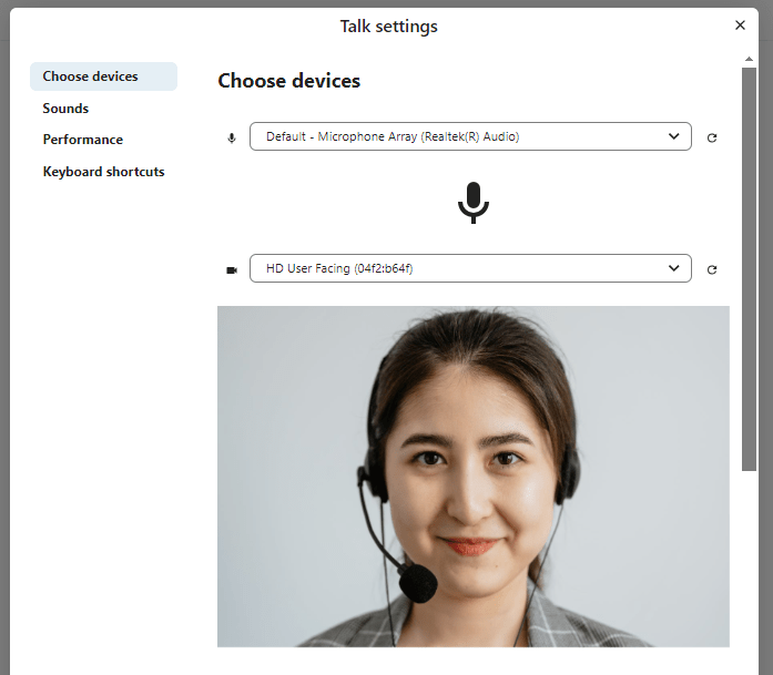 Before actually joining the call you will see a device check, where you can pick the right camera and microphone, enable background blur or even join with any devices.