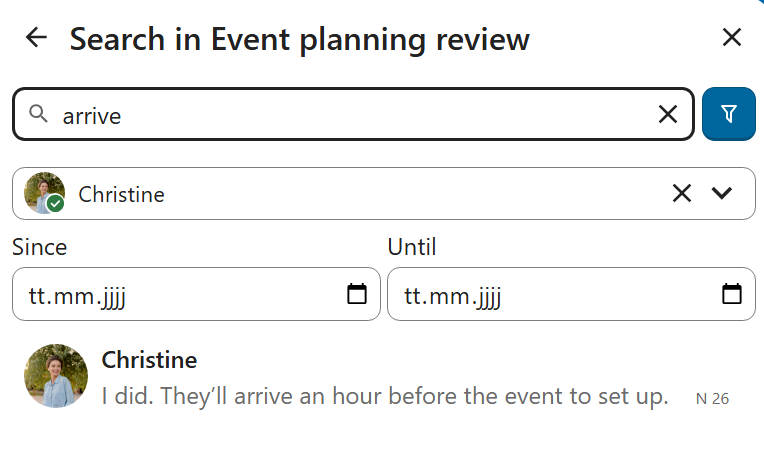 In addition to global unified search, you can search for messages within a specific conversation. In the content sidebar of a conversation, click the search icon to open the search tab.