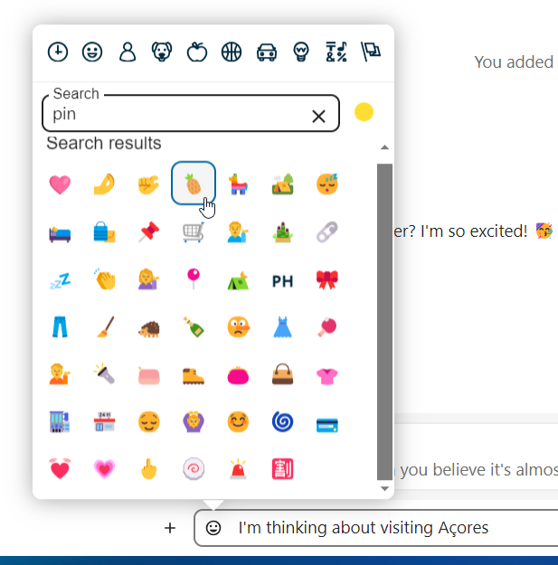 You can add emoji using the picker on the left of the text input field.