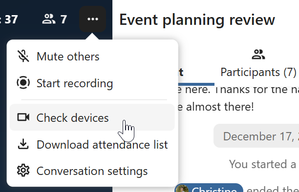Shortcut actions to create new conversations, join open ones, or quickly check your media devices.
