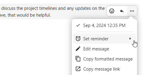 You can set reminders on specific messages. If there’s an important message you want to be notified about later, simply hover over it and click on the reminder icon.